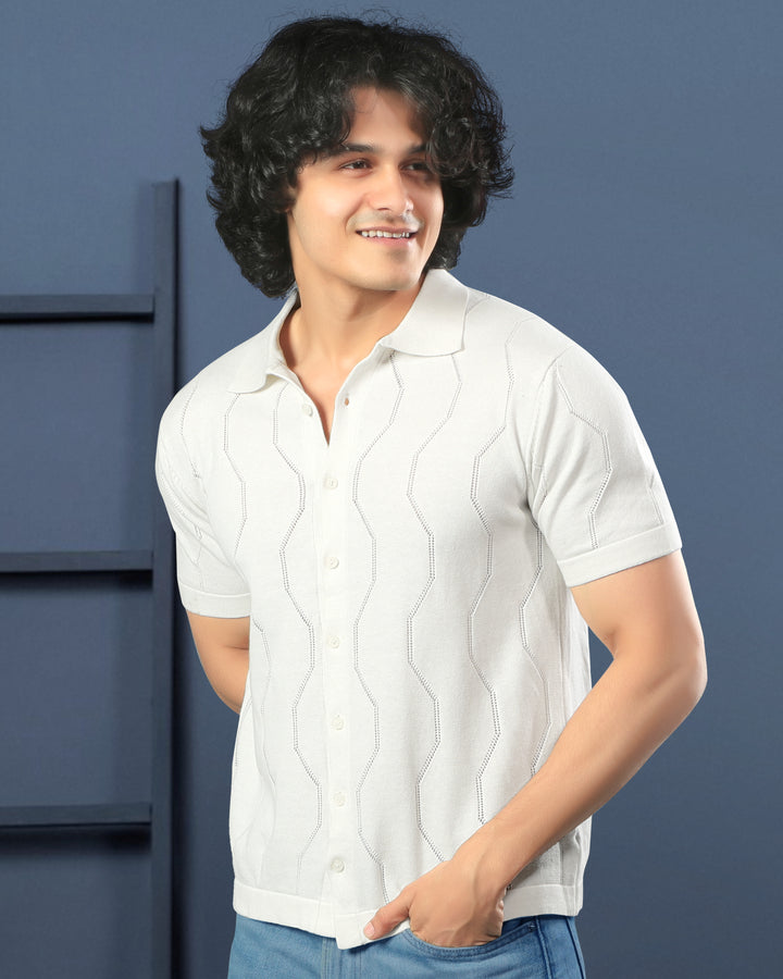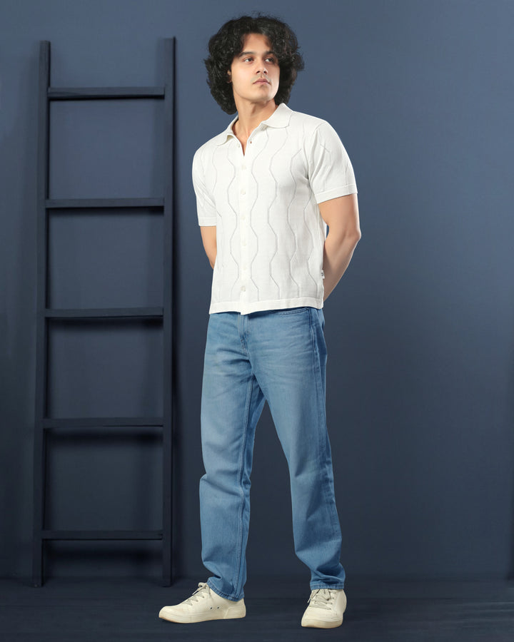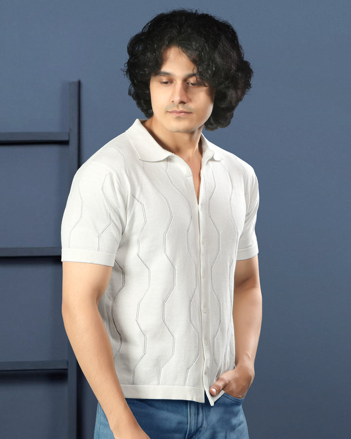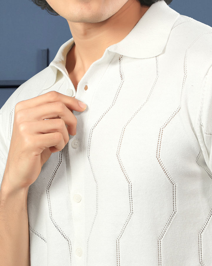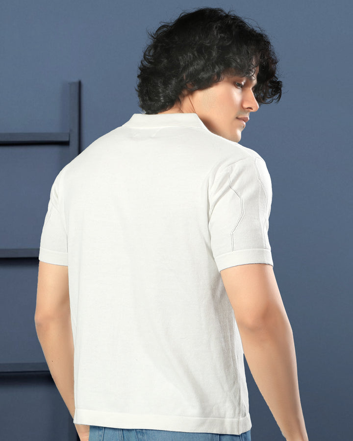Redefine casual sophistication with this Chevron Knit Polo T-shirt. Designed with an elegant zig-zag textured pattern, this polo offers a refined edge while keeping things minimal and modern. The soft knit fabric ensures exceptional comfort, while the button-down front adds a touch of timeless polish. Pair it with denims or chinos for a clean, upscale weekend look.
