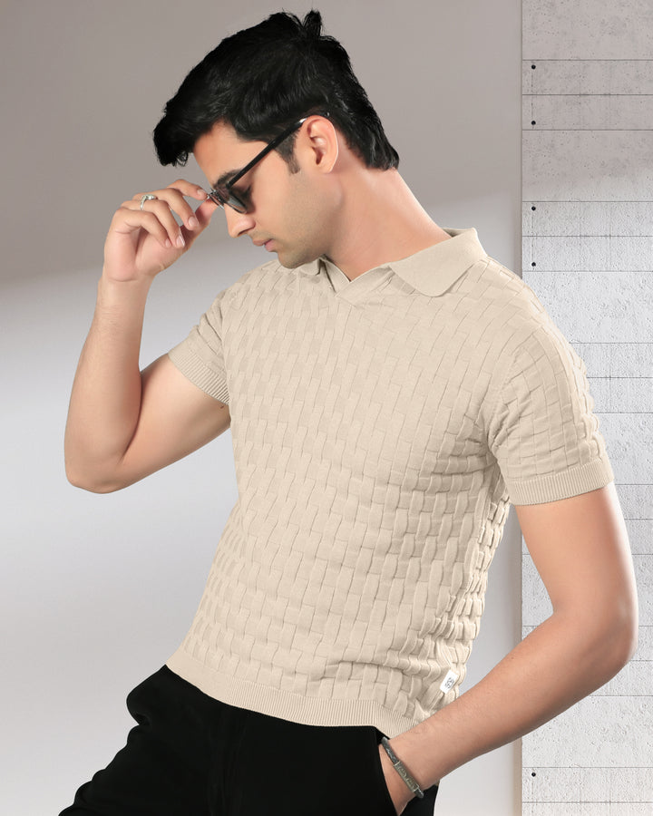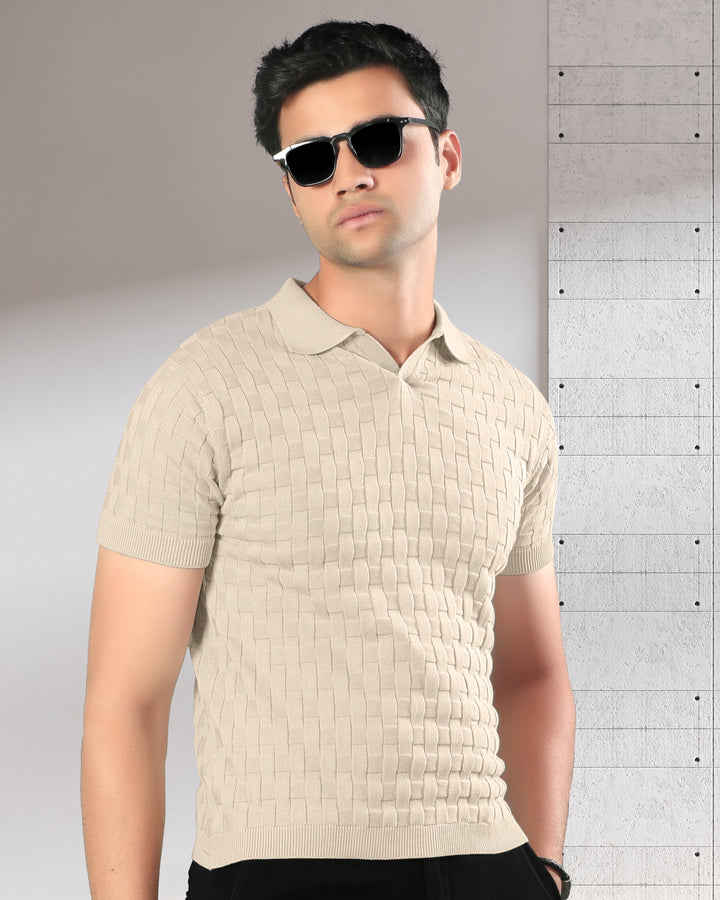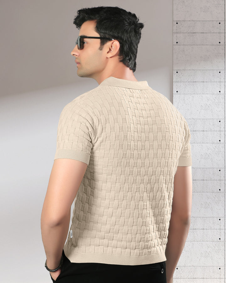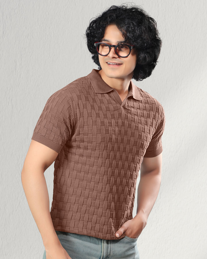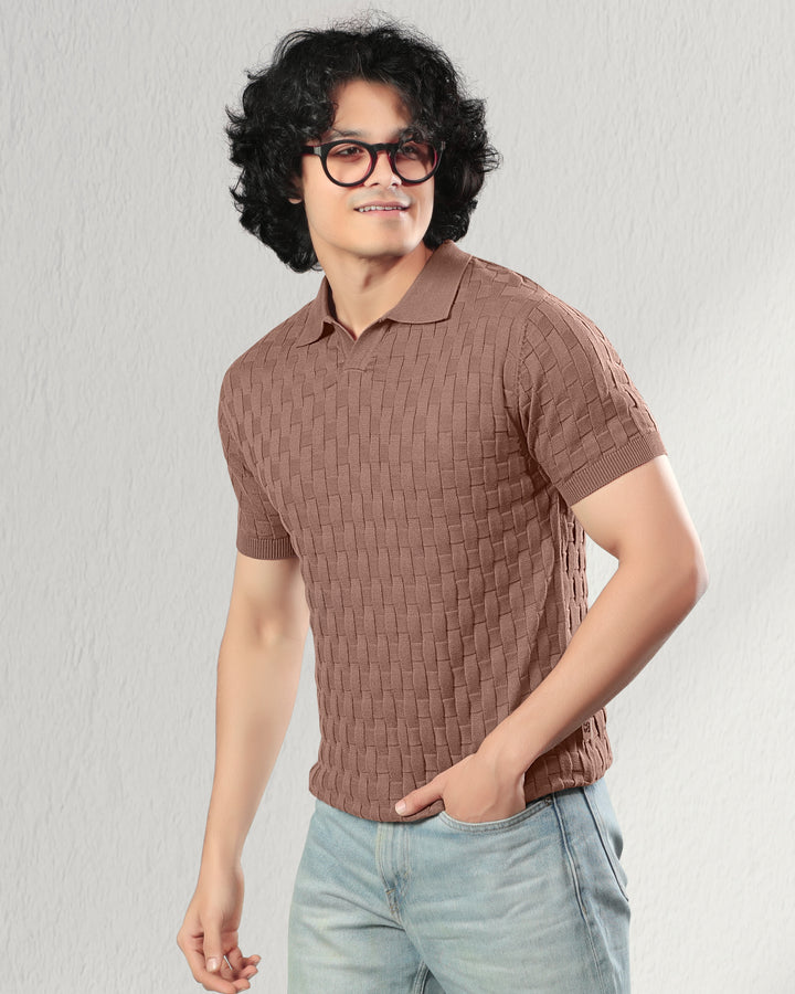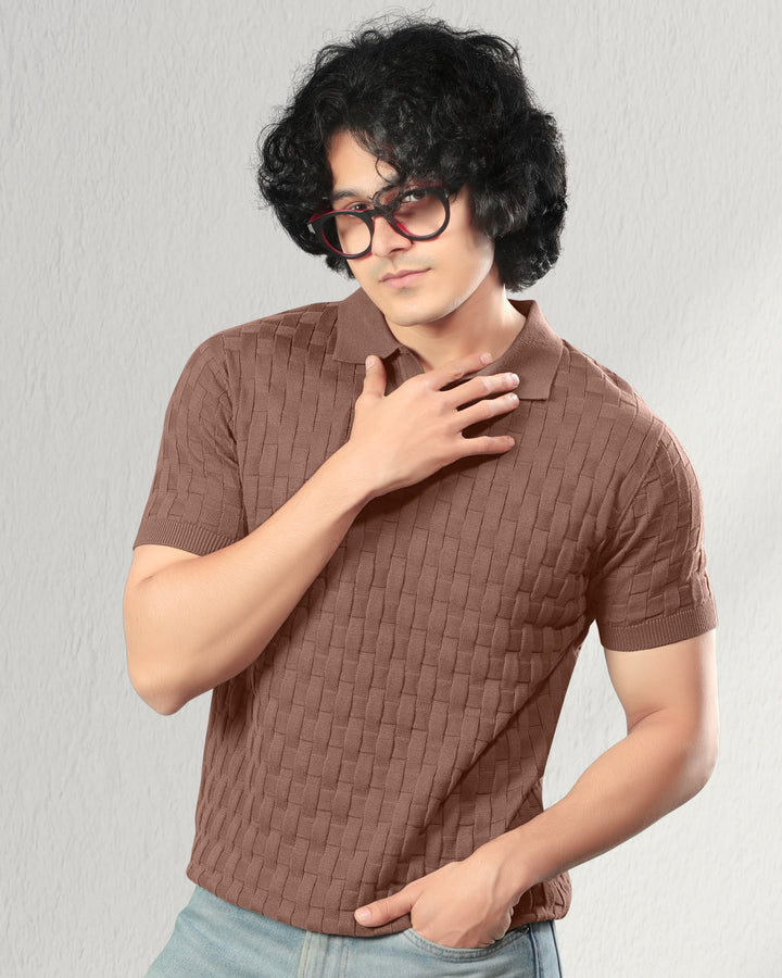 Step into refined comfort with this woven textured polo t-shirt. Crafted with a unique basket-knit design, this polo offers a premium look and feel that effortlessly elevates your casual wardrobe. Perfect for brunches, office casuals, or evening outings, it brings together classic style and modern sophistication. Featuring a soft cotton knit, ribbed sleeves, and a structured collar for a timeless appeal.
