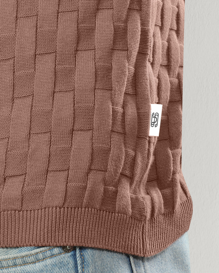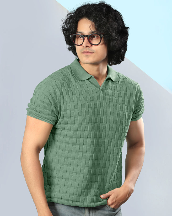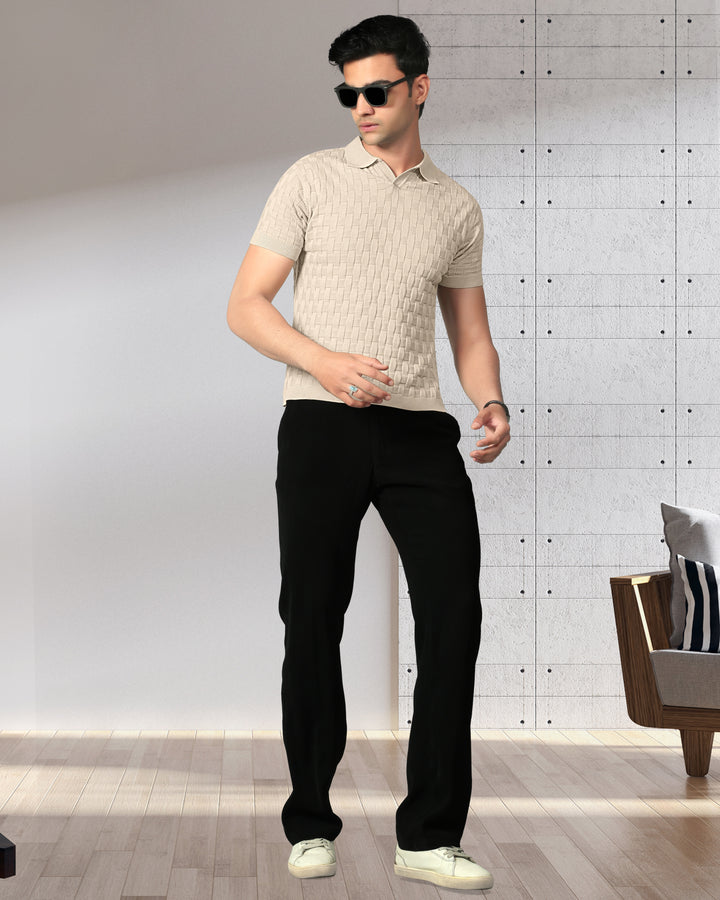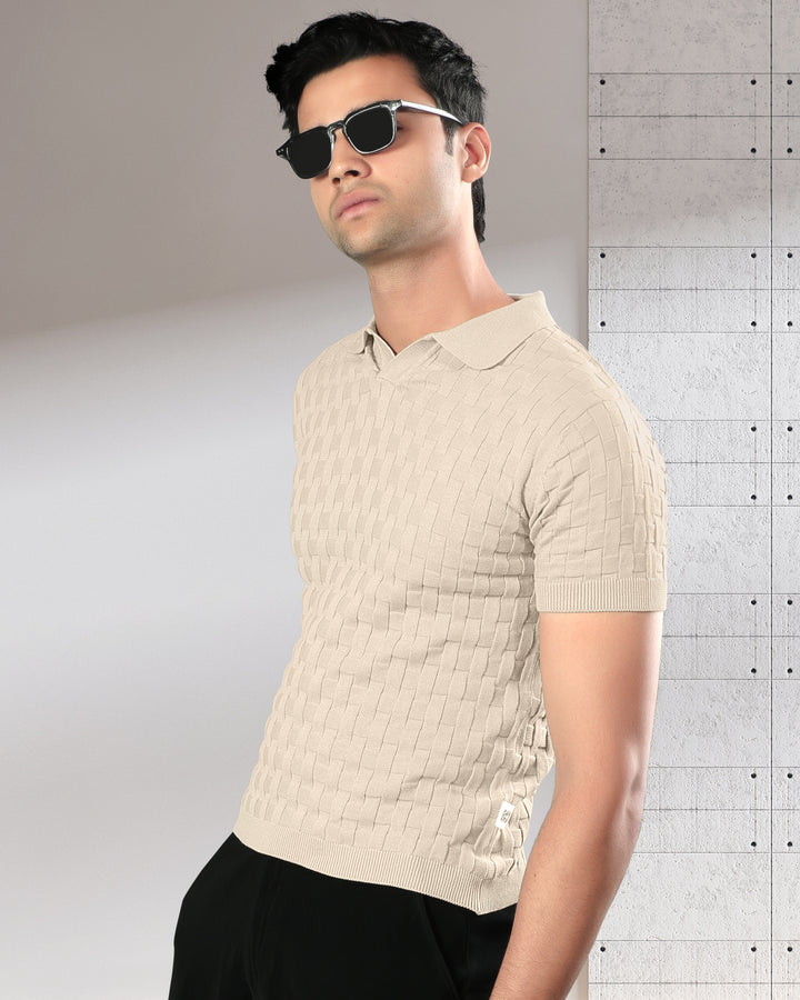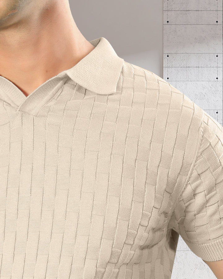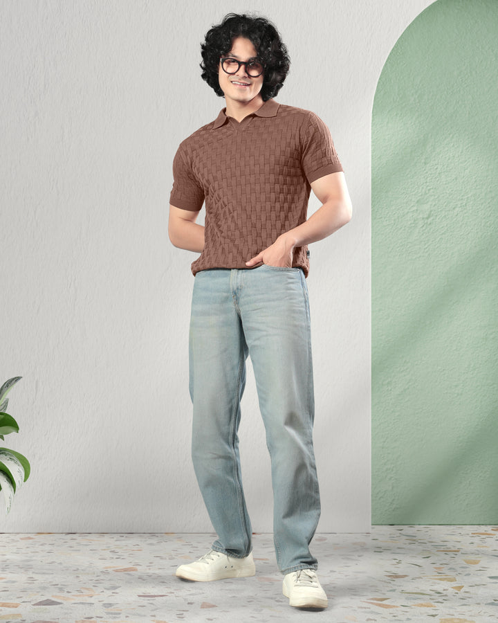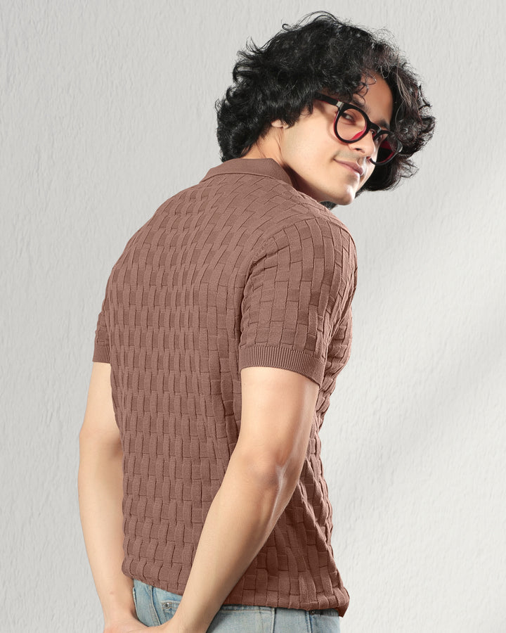 Step into refined comfort with this woven textured polo t-shirt. Crafted with a unique basket-knit design, this polo offers a premium look and feel that effortlessly elevates your casual wardrobe. Perfect for brunches, office casuals, or evening outings, it brings together classic style and modern sophistication. Featuring a soft cotton knit, ribbed sleeves, and a structured collar for a timeless appeal.